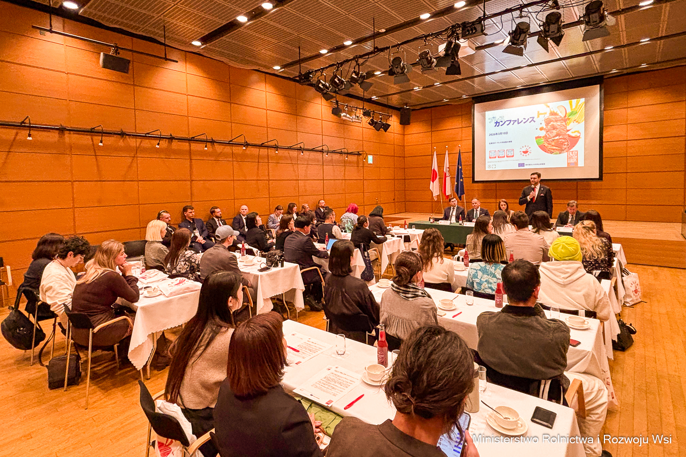 Głównymi wydarzeniami pierwszego dnia w Tokio były: uroczyste otwarcie targów Foodex Japan 2026 oraz inauguracja polskiego stoiska narodowego i stoiska branżowego. W ceremonii otwarcia 51. edycji targów Foodex Japan uczestniczył Adam Nowak, podsekretarz stanu w Ministerstwie Rolnictwa i Rozwoju Wsi. Wiceminister brał udział w otwarciu stoiska narodowego, na którym swoją ofertę prezentuje 38 firm. We wszystkich pawilonach Foodex Japan, gdzie występuje m.in. Stowarzyszenie