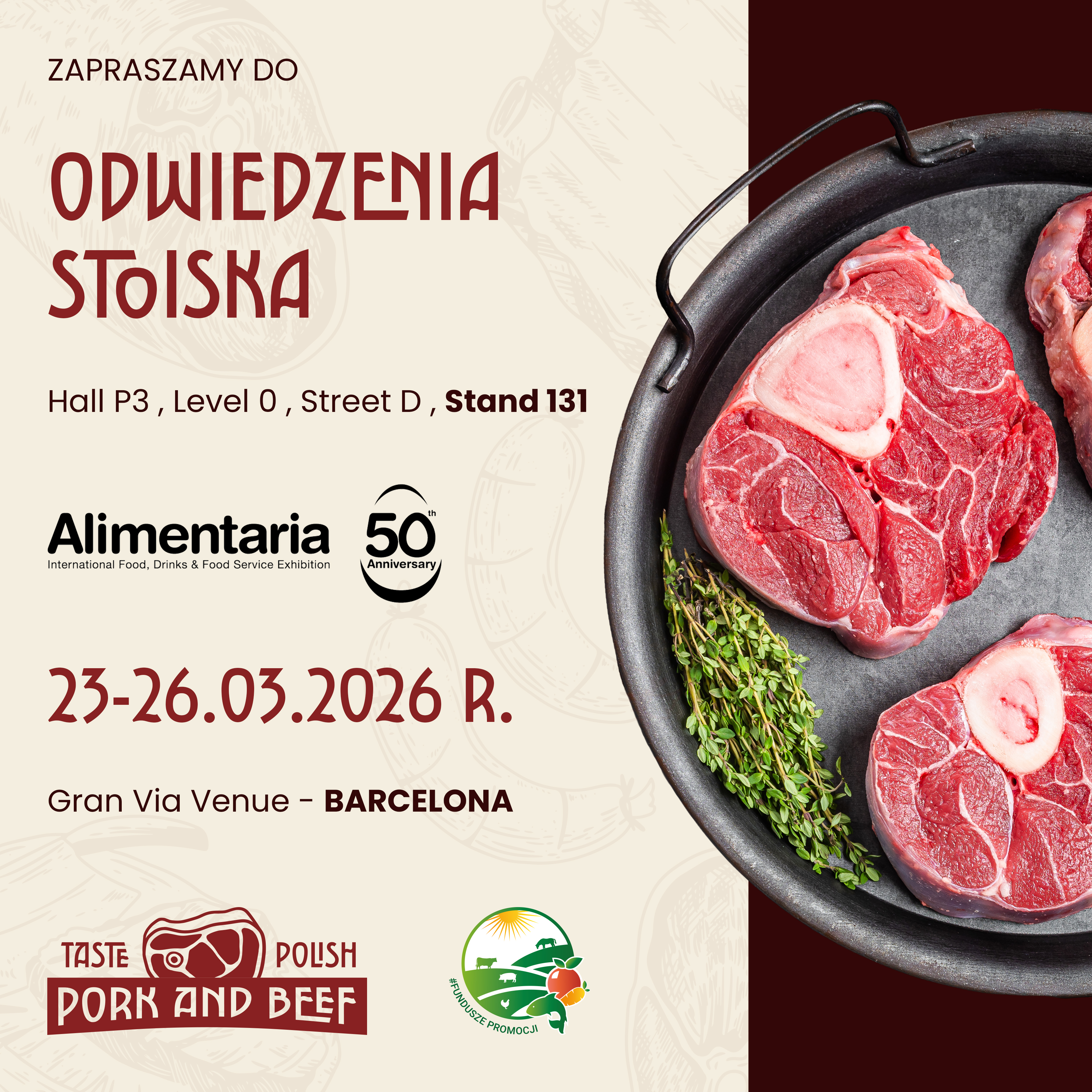 Zatem będziemy czekać na informacje i fotorelacje z targów Alimentaria 2026 i branżowego stoiska „Taste Polish Pork And Beef”.